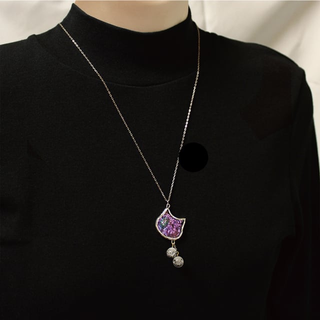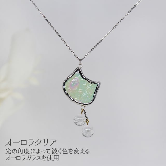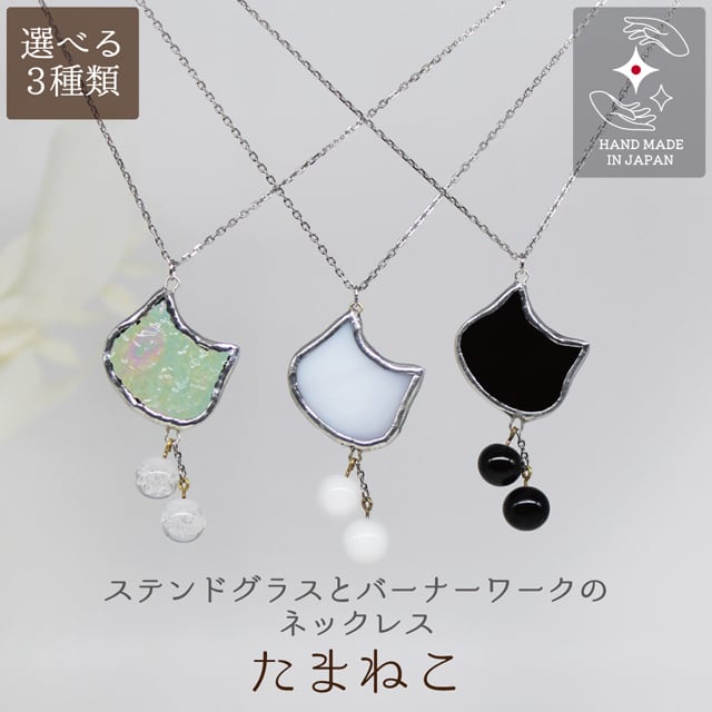 ステンドグラスとバーナーワークのネックレス【たまねこ】 ★送料無料