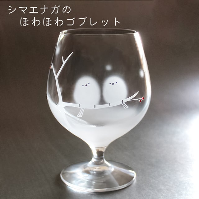 シマエナガ グッズ ゴブレット グラス ギフト【シマエナガのほわほわゴブレット】名入れ 誕生日 記念品 結婚祝い シマエナガ好き