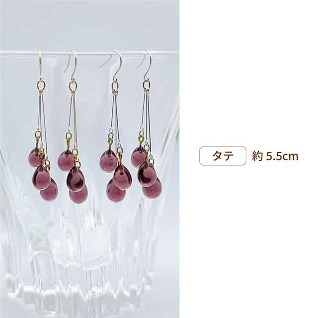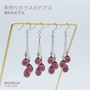 手づくりガラスの【雨だれピアス】アメジスト バーナーワーク ドロップ しずく