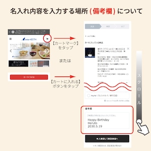 ※名入れ加工をご希望の場合、名入れイメージの確認を「希望する」を選択されますと、制作OKのご返信をいただてからの制作・発送となりますので、ご連絡のタイミングによっては発送が1~2日遅くなることもあります。ご了承ください。