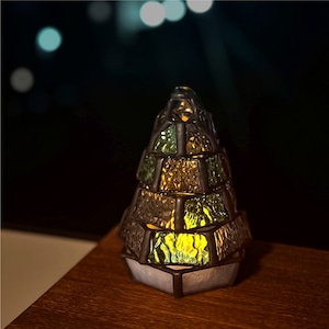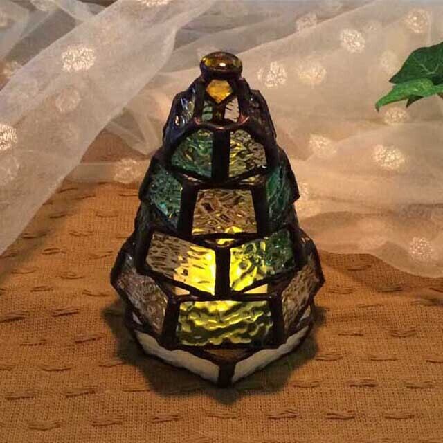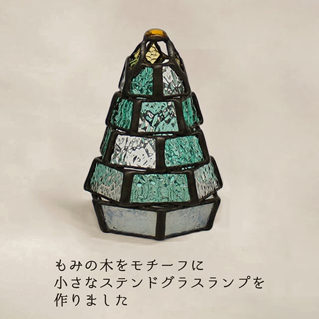 もみの木をモチーフに、ステンドグラス技法で制作したミニランプです。