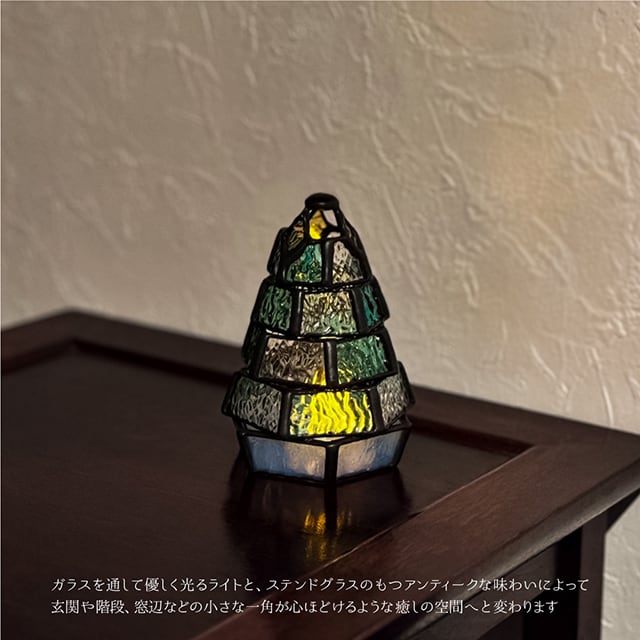 《送料無料》 ステンドグラス・ミニランプ 【小さなもみの木ランプ】(LEDライト付) クリスマス クリスマスツリー