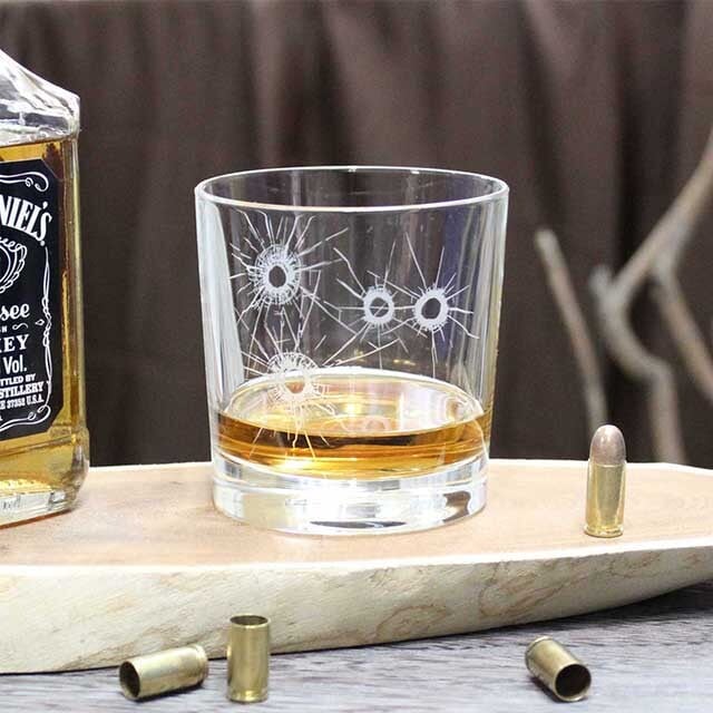 イタリア製のロックグラスに、銃弾であいた穴「バレットホール」を
