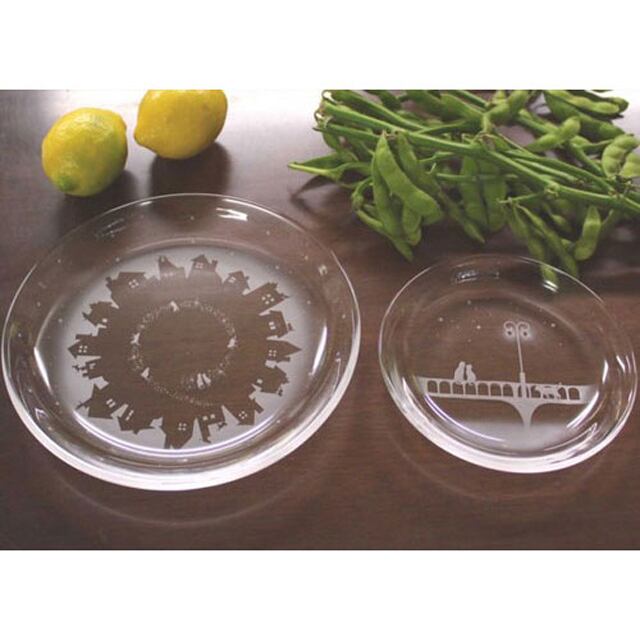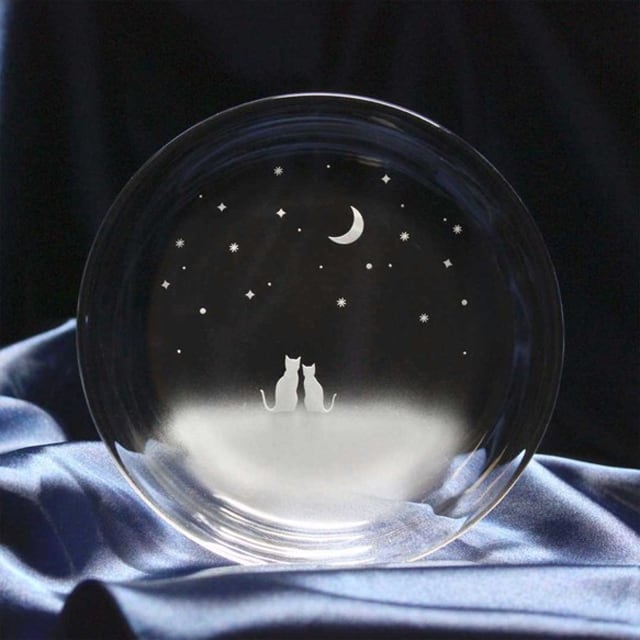 《送料無料》 猫モチーフのガラス小皿【一緒にみる三日月の夜空】★名入れ加工対応品(有料)