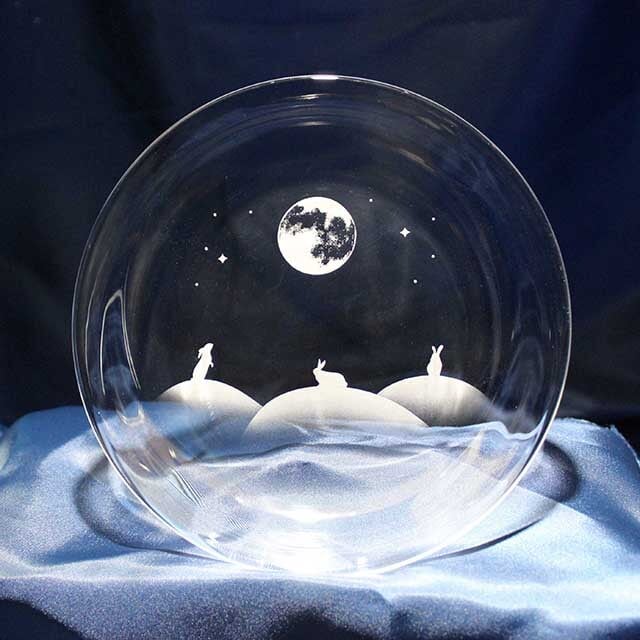 《送料無料》 うさぎモチーフのガラス小皿【月夜が楽しいうさぎたち】 ★名入れ加工対応品(有料)