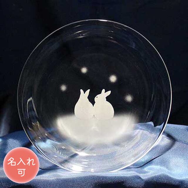 《送料無料》 うさぎモチーフのガラス小皿【雪のうさぎたち 2羽】★名入れ加工対応品(有料)