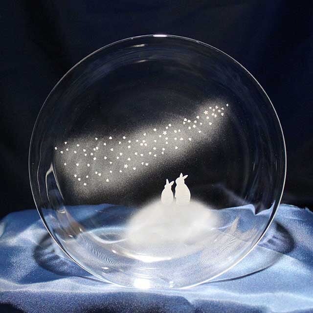 《送料無料》 うさぎモチーフのガラス小皿【青い天の川へ】 ★名入れ加工対応品(有料)