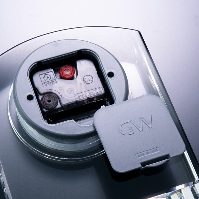 オプティカルガラス製の置時計に、お名前や記念日等を彫刻加工いたします。
