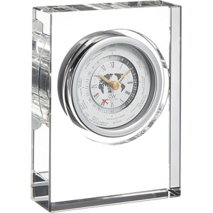オプティカルガラス製の置時計に、お名前や記念日等を彫刻加工いたします。