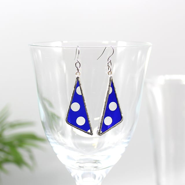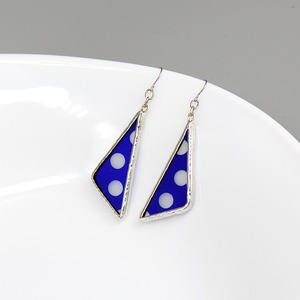 ステンドグラスの三角ピアス【ブルー/クリア・ドット柄】カラーです。