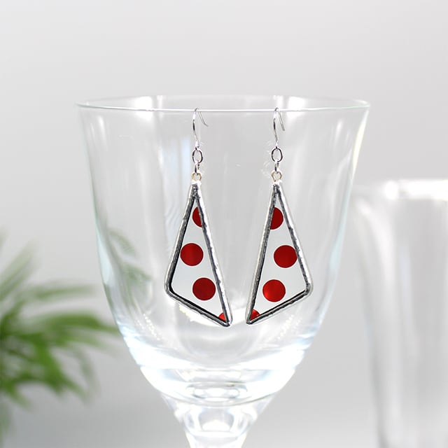 ステンドグラスの三角ピアス【レッド/赤ドット柄】カラーです。