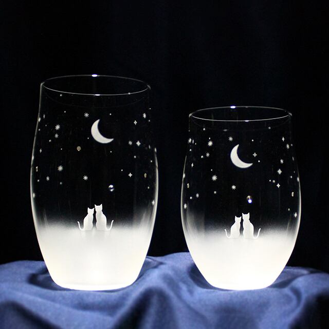 猫モチーフグラス(vol.1-set) 一緒にみる三日月の夜空 2個セット L360ml M270ml 名入れ可(有料) 送料無料 ラッピング無料 アトリエキース