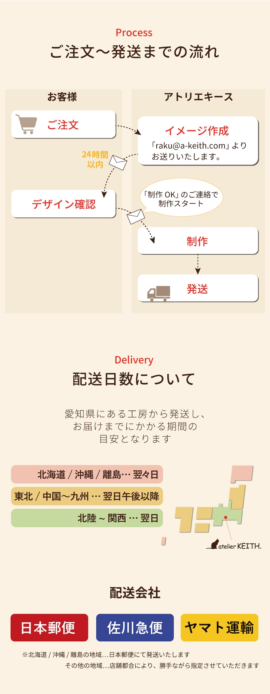 愛知県からの発送ですので、お届け目安は下記の通りとなります。