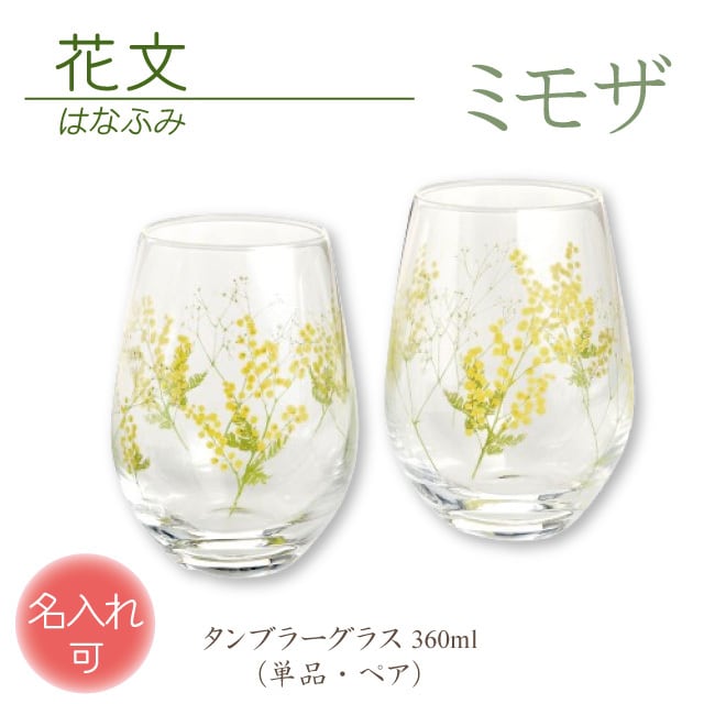 《送料無料》 【 花文 はなふみ hanafumi シリーズ / ミモザ 】 単品 or ペア 名入れ加工 対応品(別売りオプション) 東洋佐々木ガラス ★名入れ加工対応品(有料)