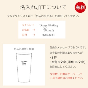 名入れの内容は「タイトル」、「お名前」、「日付」のいずれか、またはその組み合わせで対応します。